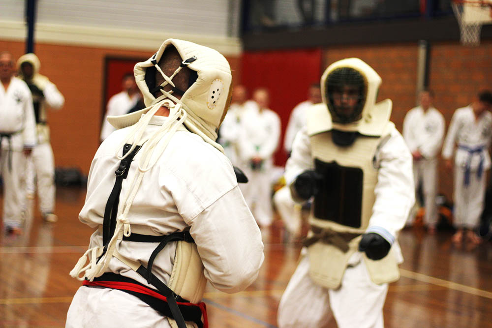 Het tweede onderdeel is kumite, wat letterlijk 'ontmoetende handen' betekent. Hierbij worden twee karateka's aan elkaar gewaagd in een full contact partij van 2 minuten. De karateka's proberen elkaar te raken door correcte technieken te gebruiken om zo punten te scoren. Omdat alle technieken voluit worden gemaakt, dragen de karateka's een bogu ofwel een gevechtsuitrusting.